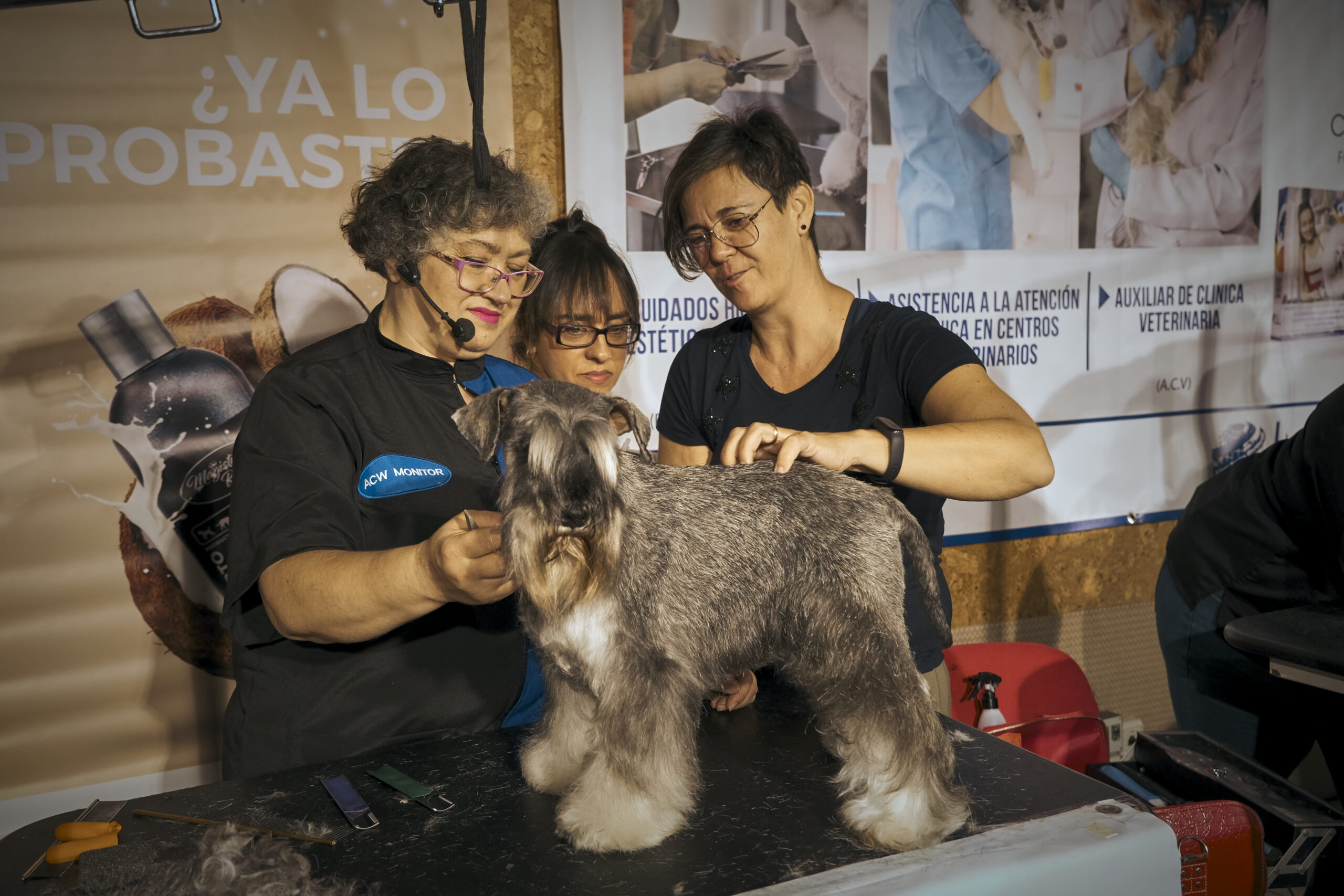 Olga de Diego, Marta Díez de Diego y Ana Belén González, tres titanes de la peluquería canina, exhibición práctica de técnicas de alto nivel de peluquería canina aplicadas al día a día: